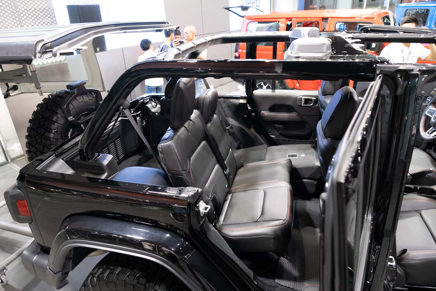 Đặc biệt, Jeep Gladiator là xe bán tải duy nhất trên thế giới có mui trần, không những thế những bộ phận khác có thể tháo rời ra dễ dàng như cánh cửa, kính chắn gió và cần gạt nước… Thùng xe phía sau của Gladiator có thiết kế kéo dài với phong cách tối giản, gọn gàng. Đồng thời thùng xe cũng được phủ bề mặt chống trơn trượt (Bed Liner) và có khả năng chuyên chở hơn 750 kg hàng hóa. Tương tự như cản trước, cản sau cũng được trang bị móc kéo hỗ trợ cho những chuyến off-road.