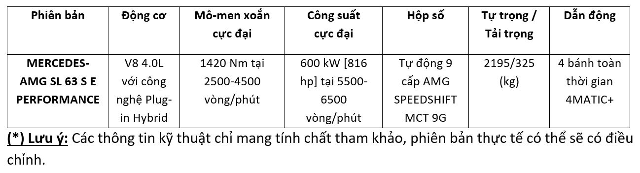 (*) Lưu ý: Đây là giá bán dự kiến cho SL 63 S E PERFORMANCE, mức giá này có thể thay đổi vào ngày ra mắt xe chính thức.