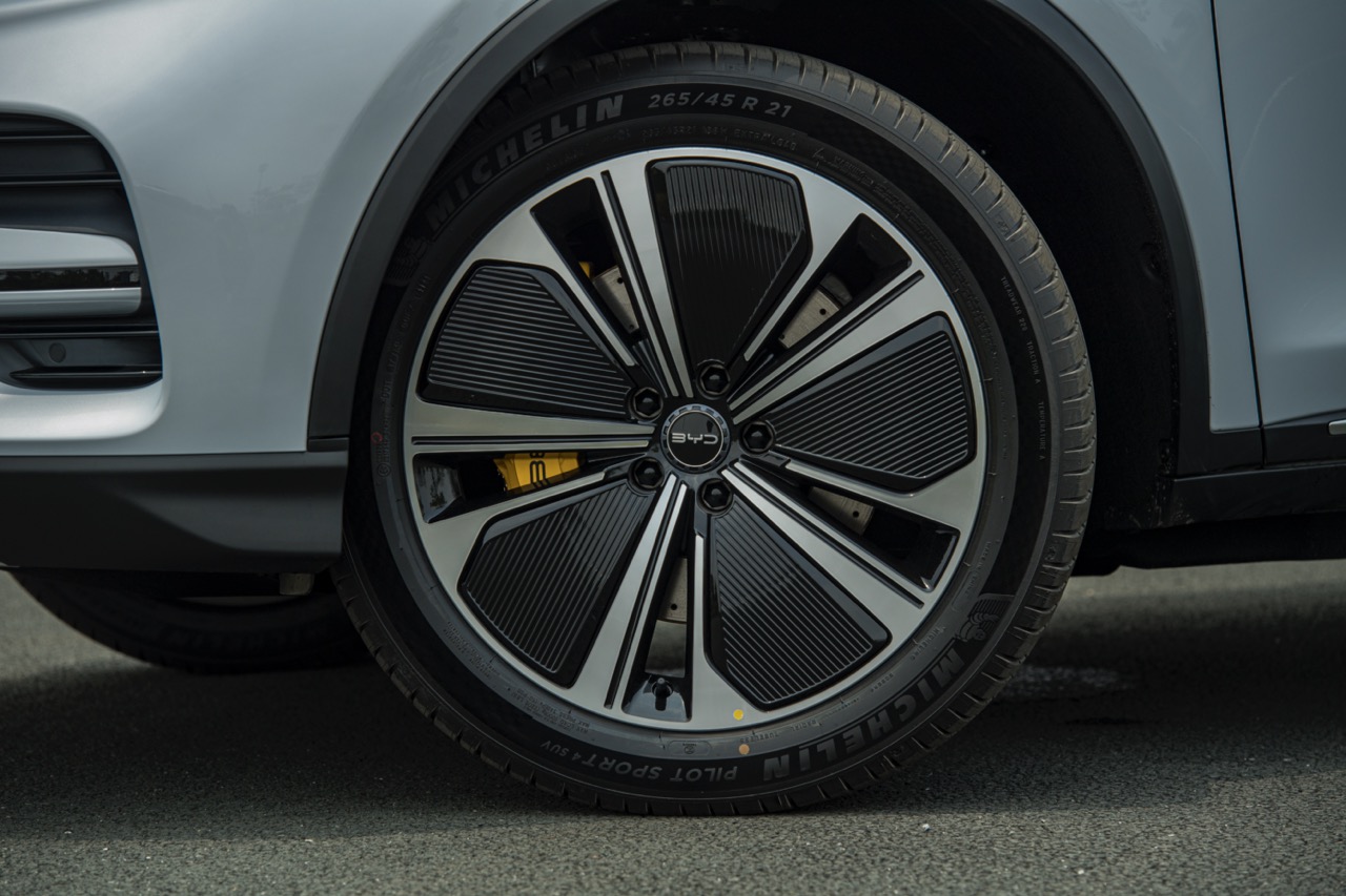 Lưới tản nhiệt chủ động tích hợp hệ thống điều chỉnh luồng khí (AGS) tối ưu hiệu suất khí động học, kết hợp cùng bộ mâm 21 inch thể thao và lốp Michelin hiệu năng cao. Kính xe phủ lớp phim mạ bạc kép, giúp cách âm, cách nhiệt, chống tia UV.