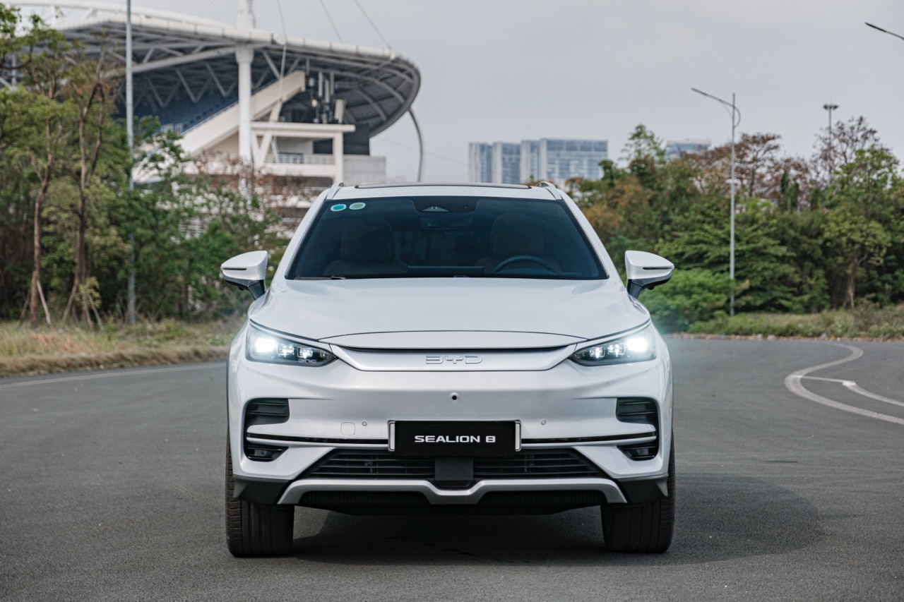 BYD Sealion 8 mang trên mình ngôn ngữ thiết kế Dragon Face trứ danh. Phần đầu xe nổi bật với đèn pha LED Matrix thông minh, có khả năng thích ứng ánh sáng để tăng tầm quan sát nhưng không gây chói mắt xe đối diện.