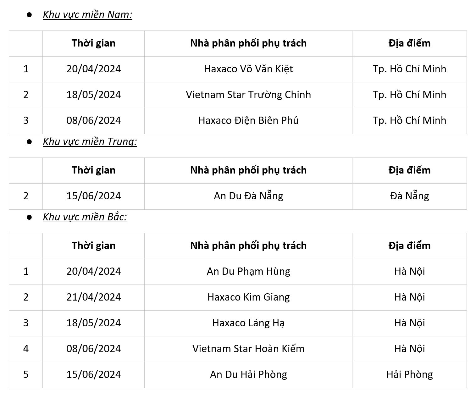 Diễn ra tại nhiều địa điểm quy mô trải dài ở các thành phố lớn, Mercedes-Benz STAR DRIVE 2024 hứa hẹn mang đến những trải nghiệm chân thực, giúp khách hàng có thể cảm nhận được chiếc xe một cách trọn vẹn. Các khu vực diễn ra sự kiện dự kiến như: The Global City (Hồ Chí Minh), Trường đua F1 Mỹ Đình (Hà Nội), …