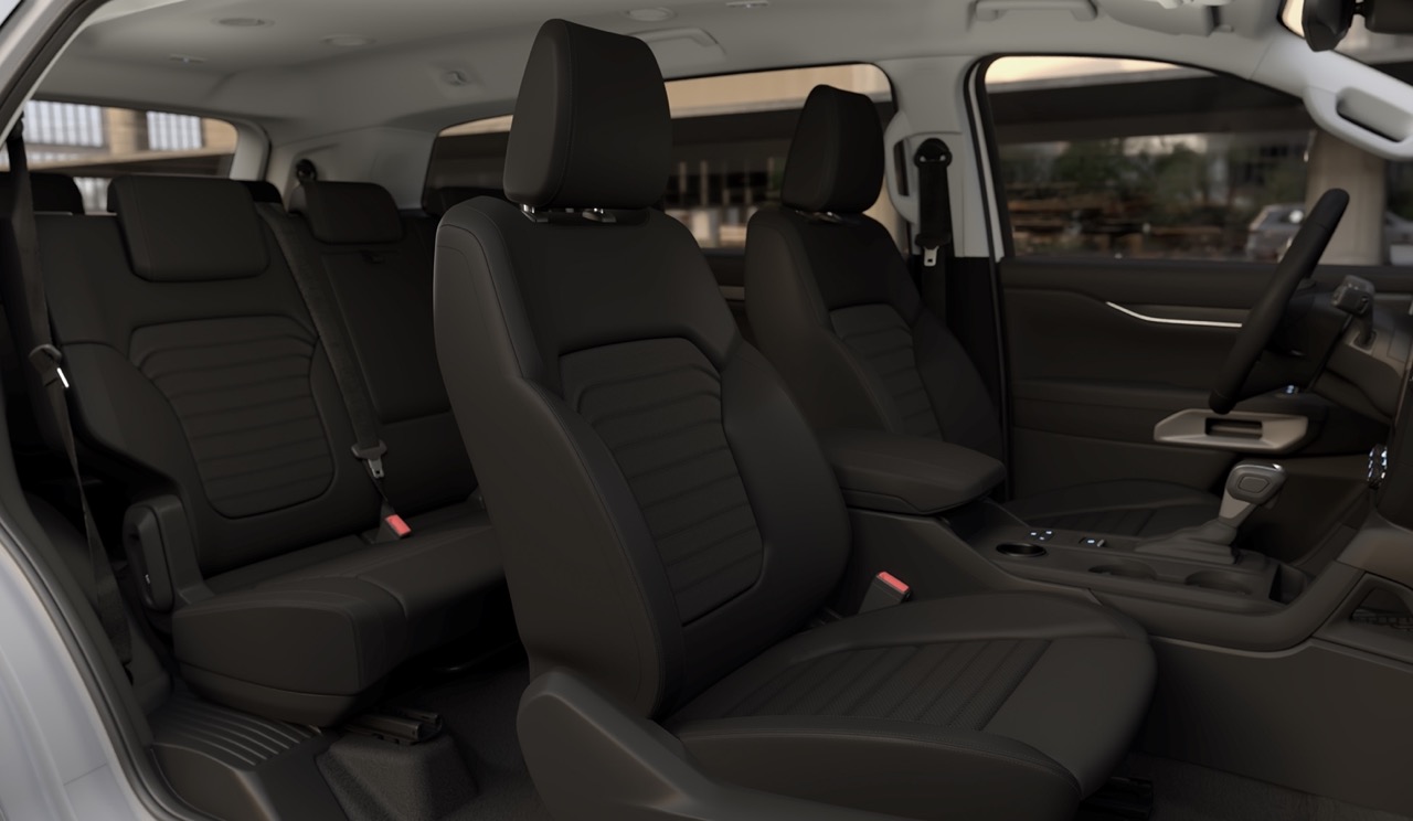 Không gian nội thất của Ford Everest Sport phiên bản đặc biệt mới thể hiện cá tính với ghế ngồi bọc da màu đen thể thao, ghế trước chỉnh điện 8 hướng, điều hòa tự động 2 vùng độc lập kèm hệ thống cửa gió hàng ghế sau.