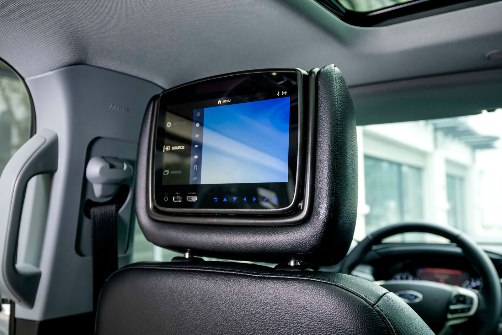 Nội thất của Ford Explorer Hoàn Toàn Mới được nâng cấp tinh tế hơn với vật liệu cao cấp như da, ốp gỗ, chrome xước mờ khiến không gian trong xe sang trọng hơn. Trên cụm điều khiển trung tâm, màn hình cảm ứng trung tâm 8 inch được tích hợp SYNC 3.4 là một trang bị quan trọng giúp chia sẻ thông tin với cụm đồng hồ kỹ thuật số 6,5 inch sau vô lăng. Ngoài ra, hai màn hình giải trí 8 inch ở hàng ghế sau cũng hỗ trợ xem các nội dung độc lập.