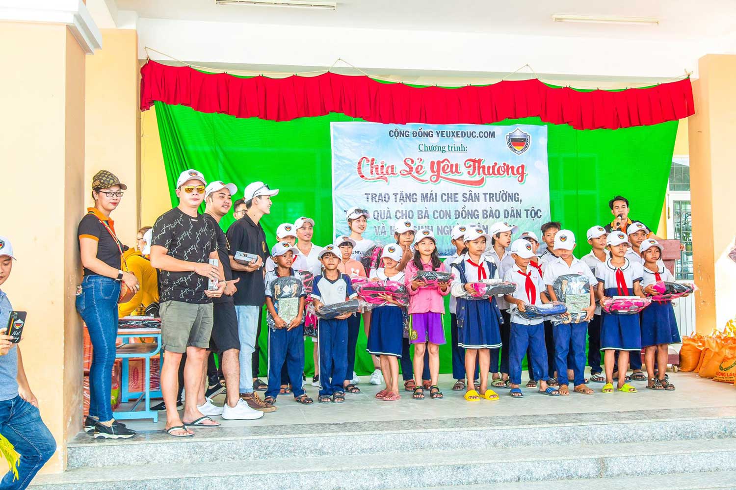 Trong chuyến đi lần này, cộng đồng Yêu xe Đức cũng kết hợp với xã Tân Xuân, huyện Hàm Tân trao tặng 110 suất qùa cho các gia đình thiểu số và 40 triệu đồng hỗ trợ trường Tiểu Học Tân Xuân xây dựng mái che cho các em học sinh.