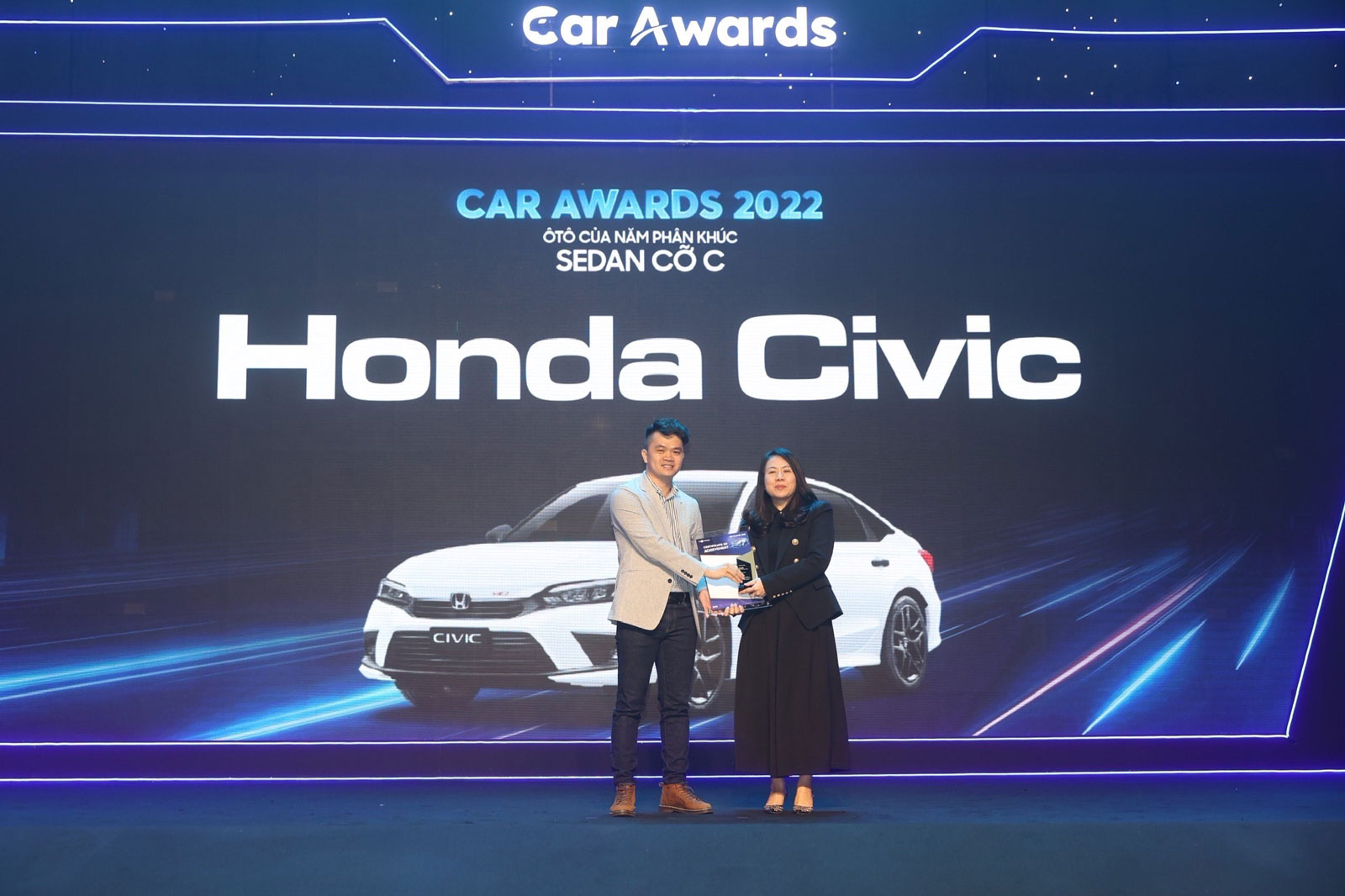- Honda Civic được vinh danh 2 giải thưởng trong phân khúc sedan hạng C gồm “Ô tô của năm 2022” của báo điện tử VnExpress, đồng thời nhận được hai danh hiệu “Vô lăng xe phổ thông 2022” do Công ty cổ phần VCCorp tổ chức và “Xe được yêu thích nhất” phân khúc xe gầm thấp cỡ C tại Lễ công bố Danh hiệu “Xe của năm 2023” do hai cộng đồng người sử dụng xe ô tô lớn nhất Việt Nam – Otosaigon và Otofun tổ chức.