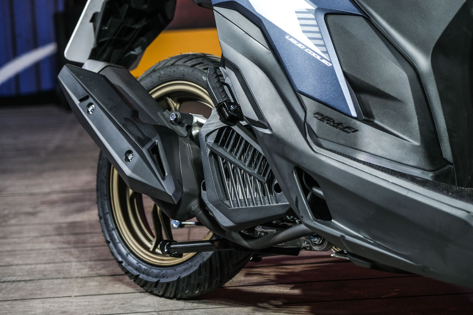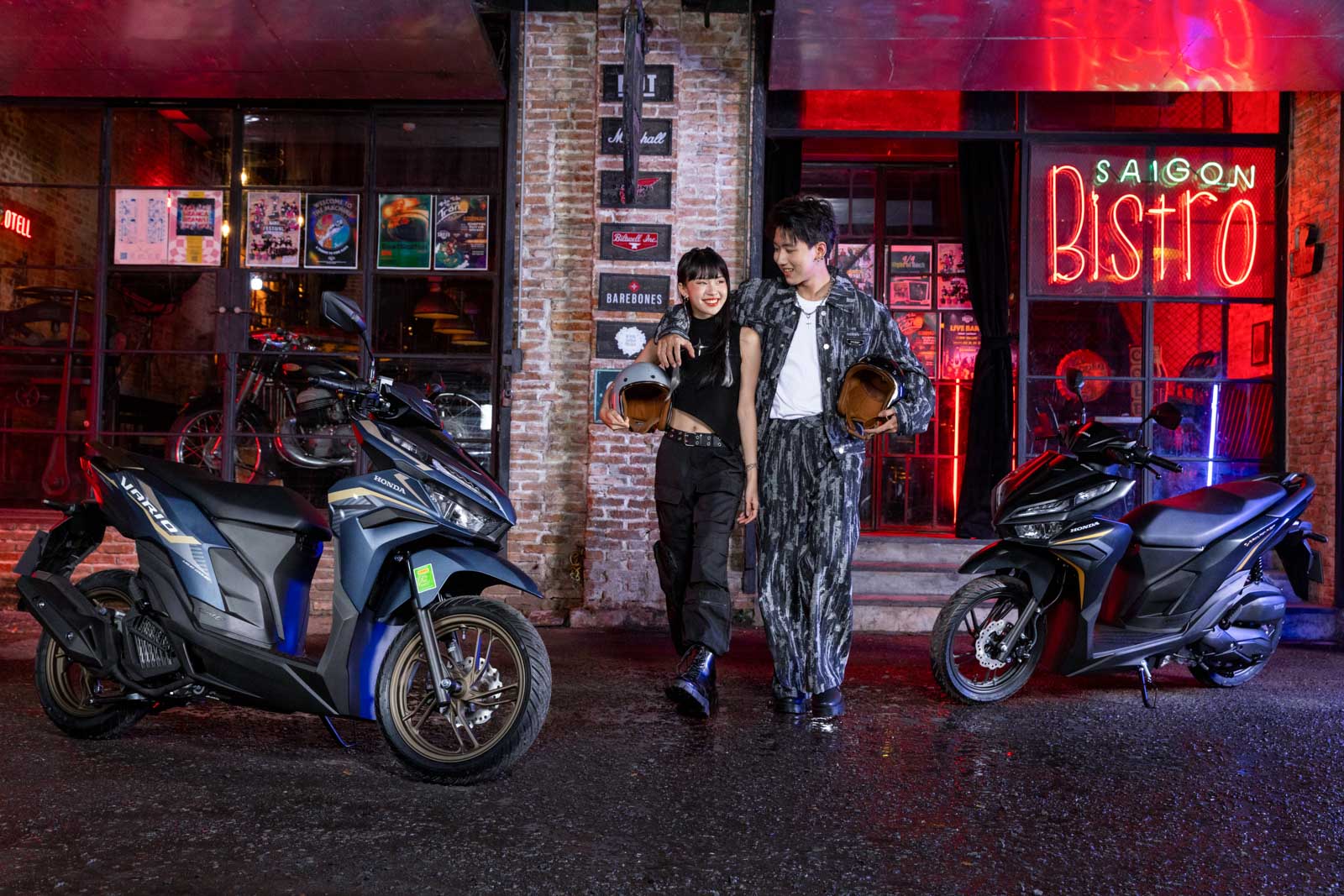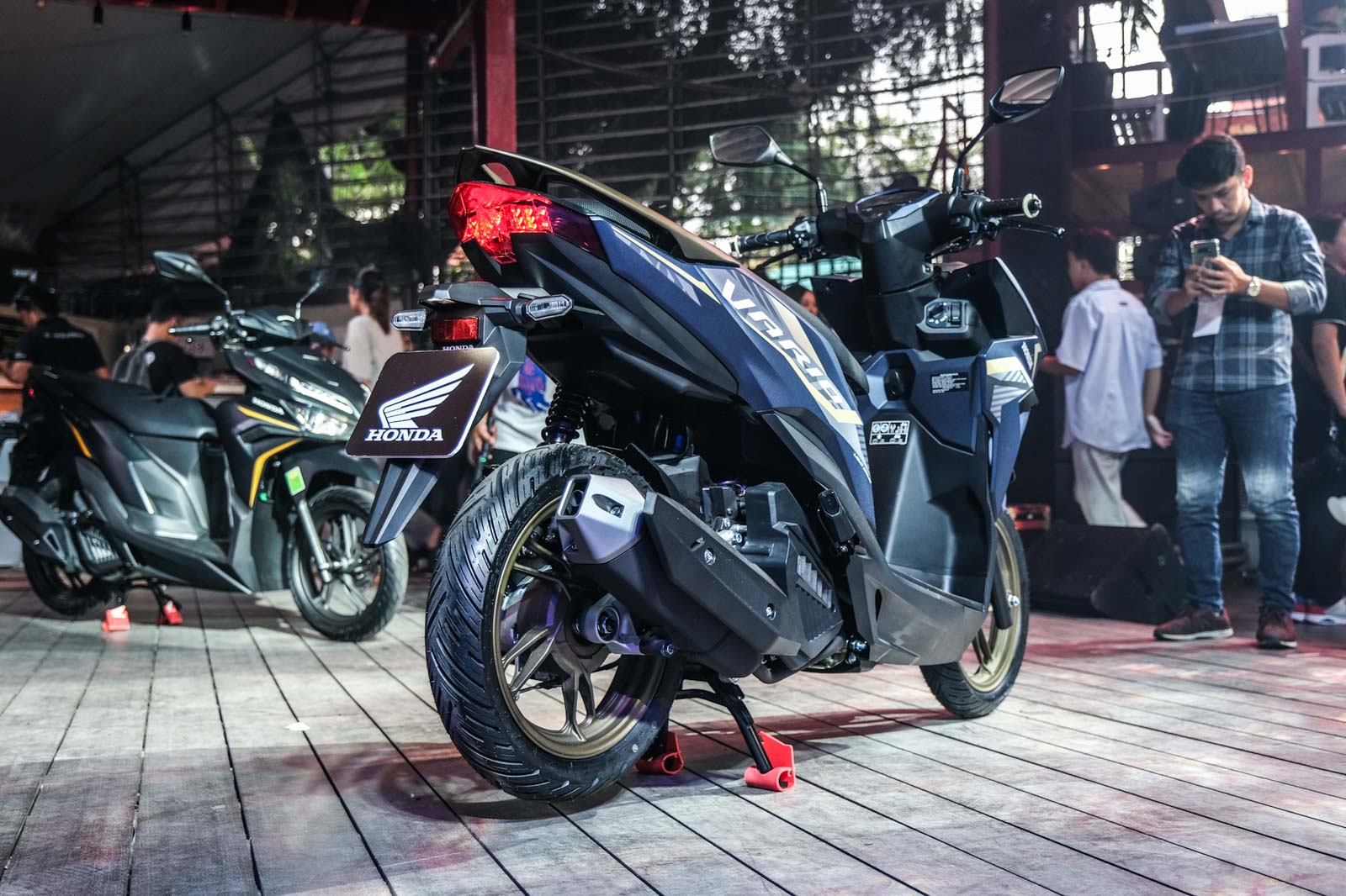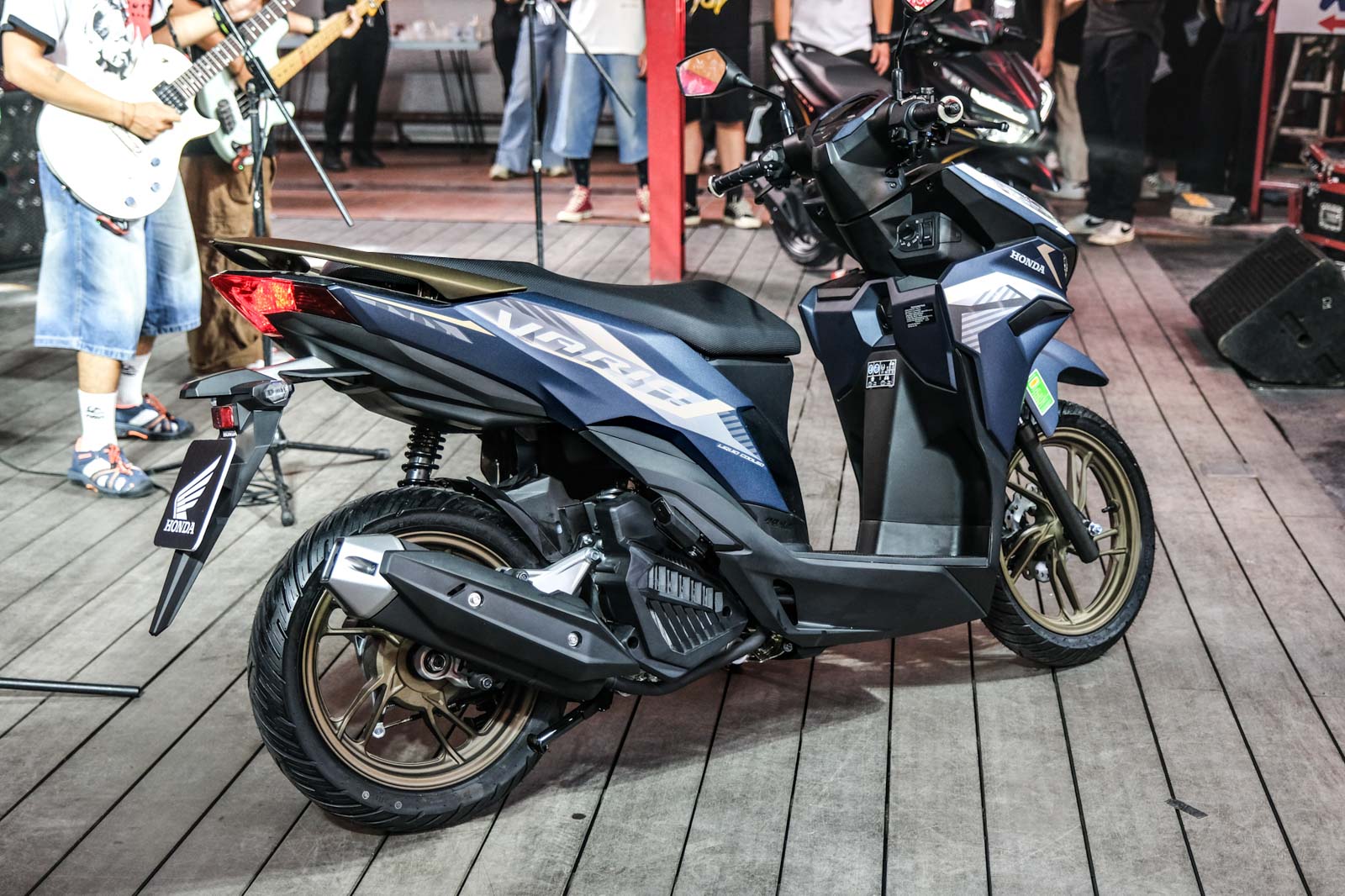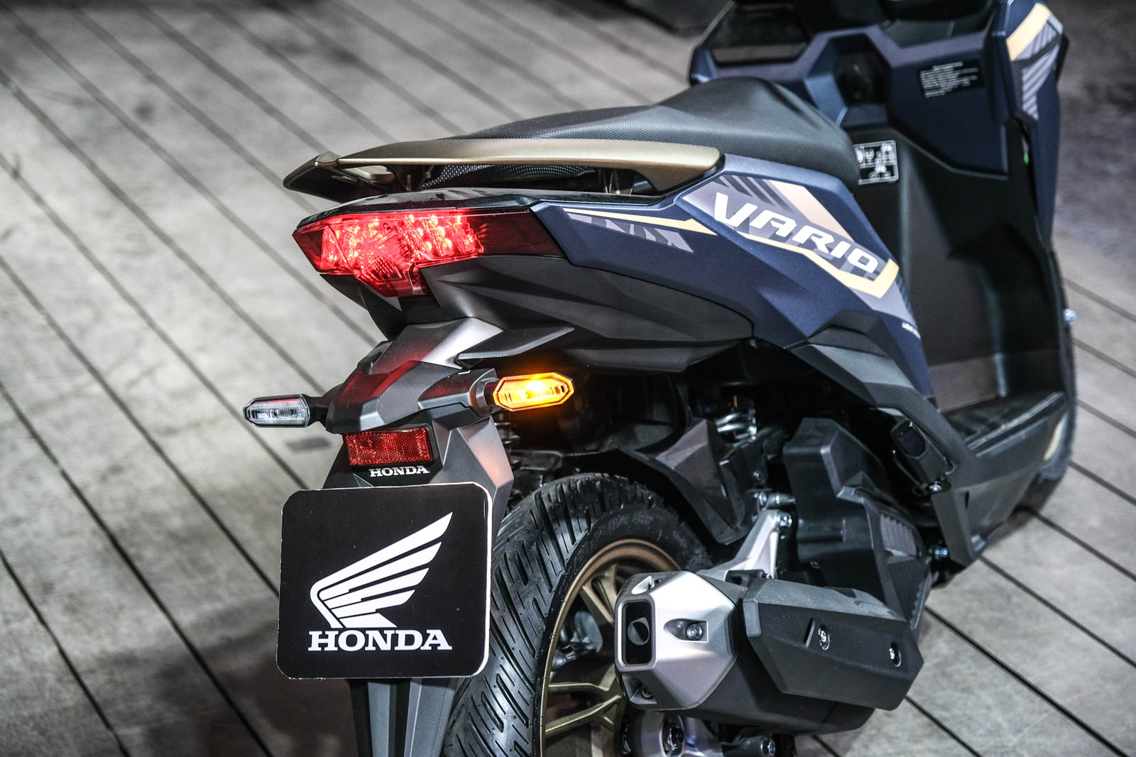 Ở phiên bản Đặc biệt, toàn bộ xe được phủ lớp sơn đen nhám cao cấp, tăng điểm nhấn bằng sọc màu vàng đậm. Dòng chữ “VARIO” tông vàng được đúc nổi góc cạnh, là chi tiết đáng chú ý ở thân xe. Phiên bản Thể thao sử dụng màu Xanh đen cũng mang đến hình ảnh trẻ trung, kích thích thị giác nhờ tông màu xanh kết hợp với bộ tem xe tương phản cao và vành xe màu vàng đồng nổi bật.