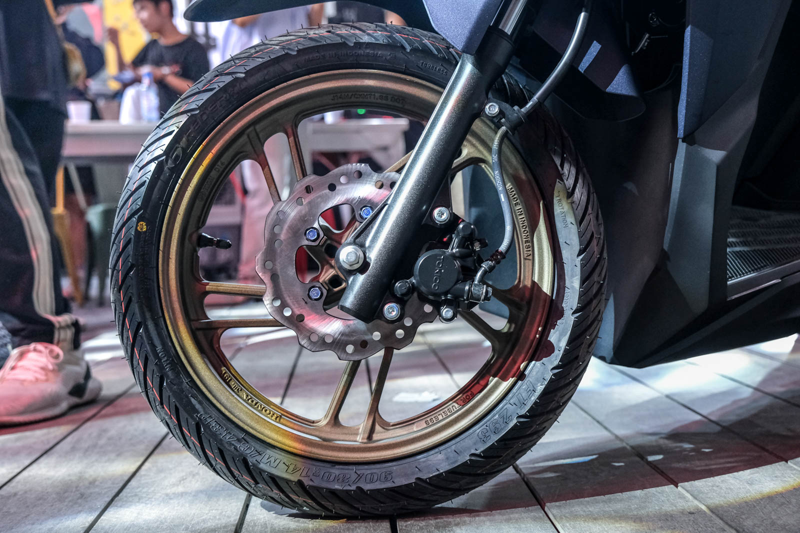 Bộ vành có kích thước 14″ trước và sau, đi cùng lốp xe không săm kích thước rộng giúp xe ổn định và bám đường tốt. Trọng lượng Vario 125 là 113 kg, nhẹ hơn Vario 160 từ 3-4 kg (tùy phiên bản). Chiều cao yên của Vario 125 nằm ở mức 769 mm và khoảng sáng gầm xe 131 mm. Dung tích bình xăng Vario 125 giống đàn anh Vario 160 là 5,5 lít.