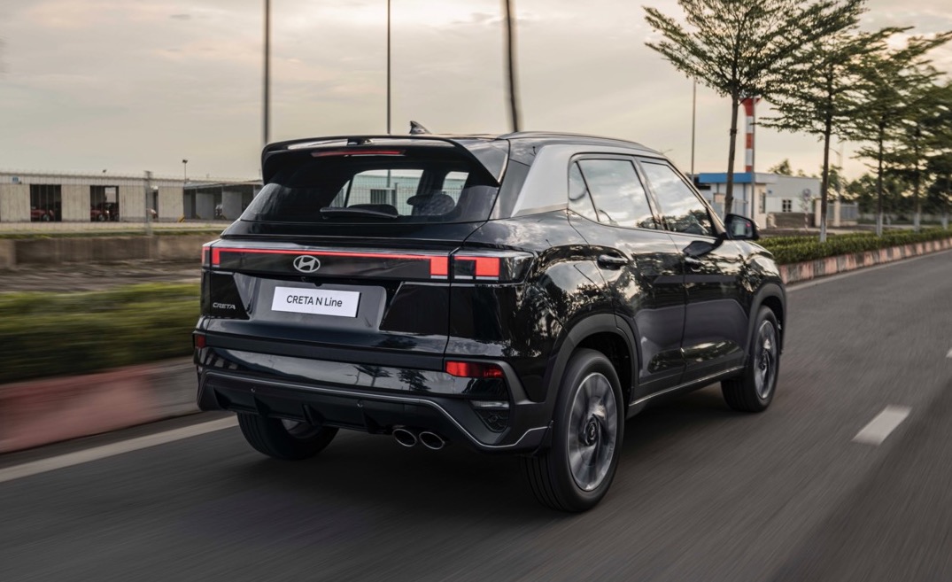 Đặc biệt, phiên bản thể thao N Line mang phong cách hầm hố hơn với cản trước/sau, phần ốp hông được sơn màu đỏ đặc trưng nổi bật. Creta N Line còn được trang bị cánh lướt gió phía sau xe, giúp gia tăng tính thể thao và hiệu quả khí động học.