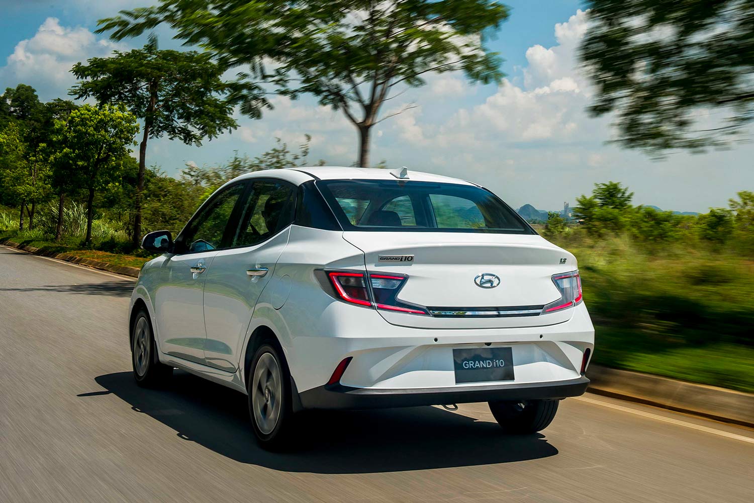 Đuôi xe phiên bản Hatchback được tạo hình với cụm đèn hậu kích cỡ lớn, còn với phiên bản sedan là cụm LED cách điệu đem đến hiệu ứng ánh sáng đẹp mắt. Các chi tiết khác thể hiện sự tinh tế trong thiết kế của Grand i10 như tay nắm cửa mạ Crom, đèn xi-nhan tích hợp cùng gương chiếu hậu, đèn phanh trên cao dạng LED,… tạo nên một ngoại hình hấp dẫn hàng đầu phân khúc, mang đậm phong cách châu Âu hiện đại.