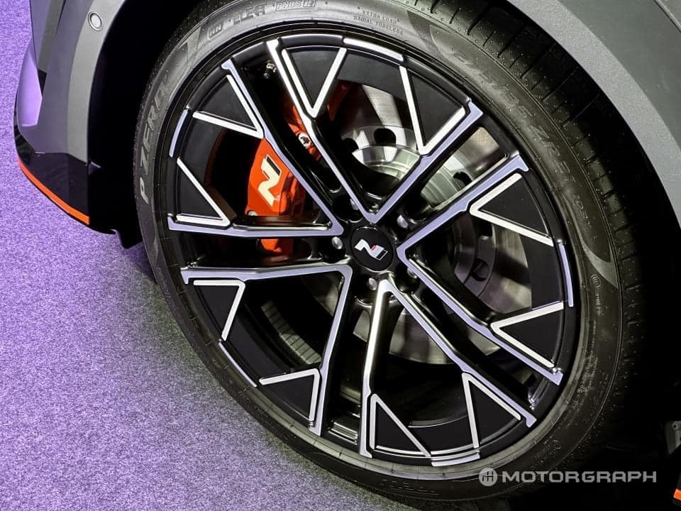 Cuối cùng, khung gầm của Ioniq 5 N được tăng cường thêm 42 điểm hàn và 2,1 m keo ghép nối bổ sung để sở hữu độ cứng tốt hơn. Mâm theo xe Ioniq 5 N là loại đúc nén (forged) siêu cứng, siêu nhẹ và có kích thước 21”.
