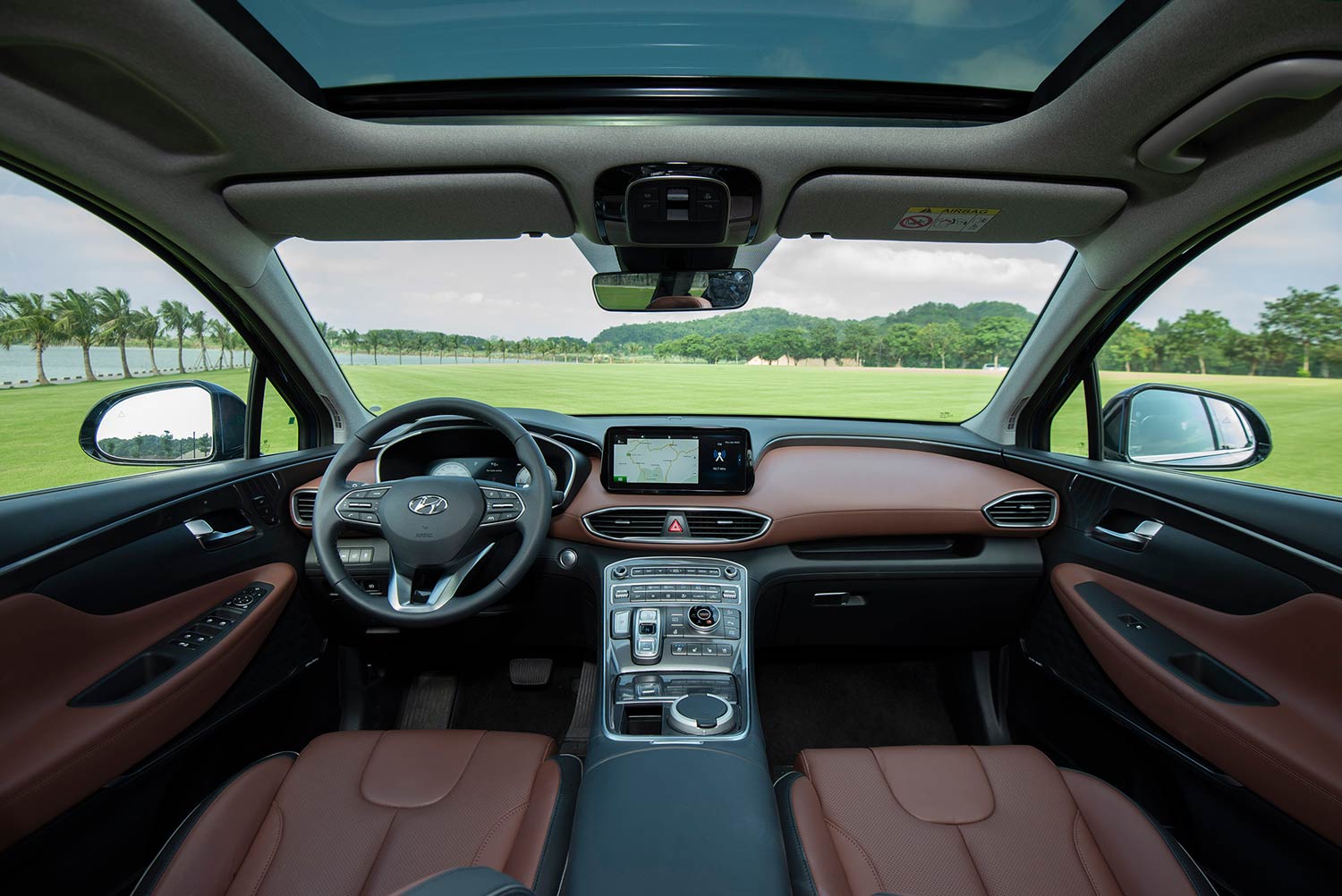 Hyundai Santa Fe thế hệ mới tiếp tục được duy trì và nâng cấp những tiện nghi cao cấp như cửa sổ trời toàn cảnh Panorama, sạc không dây chuẩn Qi, hệ thống ghế chỉnh điện và nhớ ghế, hệ thống sấy vô lăng, sấy và thông gió hàng ghế trước, lẫy chuyển số vô lăng, gạt mưa tự động, kính trước chống mù và chống đọng nước tự động, cổng sạc hiệu suất cao trên các hàng ghế, phanh tay điện tử EPB, giữ phanh tự động Auto Hold…đem đến một không gian sang trọng và tiện ích trên khắp các vị trí.