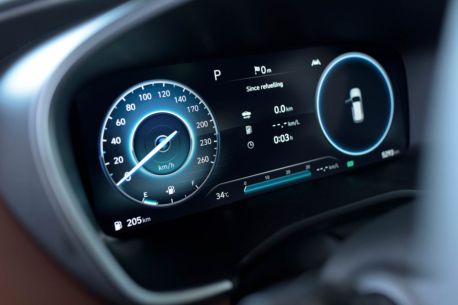 Bảng đồng hồ trung tâm là màn hình điện tử toàn phần Full Digital 12,35 inch. Tùy theo chế độ lái mà cụm đồng hồ này có thể hiển thị theo nhiều màu sắc khác nhau. Đồng hồ này có thể tùy biến, đồng thời tích hợp tính năng giám sát điểm mù BVM. Đặt phía trước cụm đồng hồ là hiển thị thông tin lên kính lái HUD (Head Up Display), hiển thị chi tiết các thông tin hữu ích như tốc độ hiện tại, giới hạn tốc độ, cảnh báo, dẫn đường…