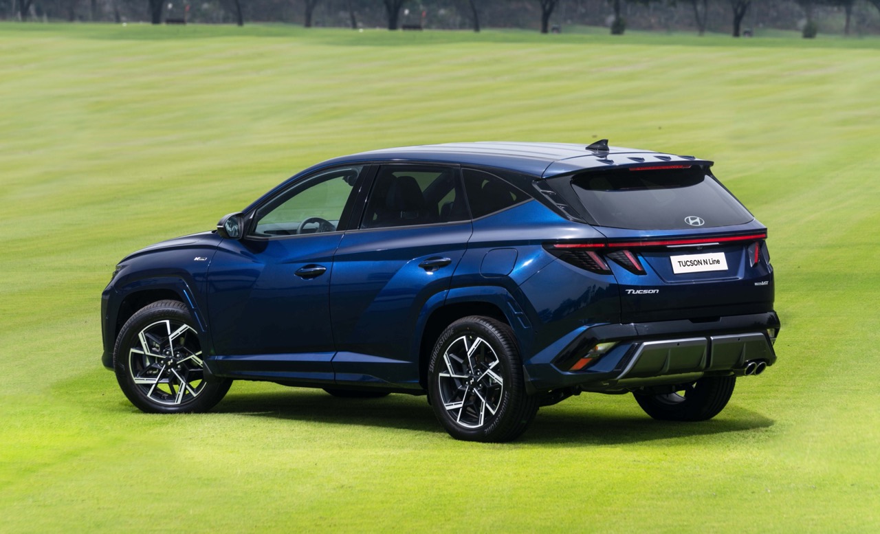 Điểm nhấn ở phần thân xe với phong cách thiết kế Động lực học tham số – “Parametric Dynamics” vẫn được giữ nguyên, tạo nên nét đặc trưng cho Tucson thế hệ thứ 4. Phần đuôi xe được thiết kế thể thao hơn với cản sau tích hợp bộ khuếch tán gió cùng bộ ống xả kép, bên cạnh đó cánh lướt gió cũng được bổ sung các thanh khuếch tán mang lại cho Tucson N Line một diện mạo đặc trưng và khác biệt.