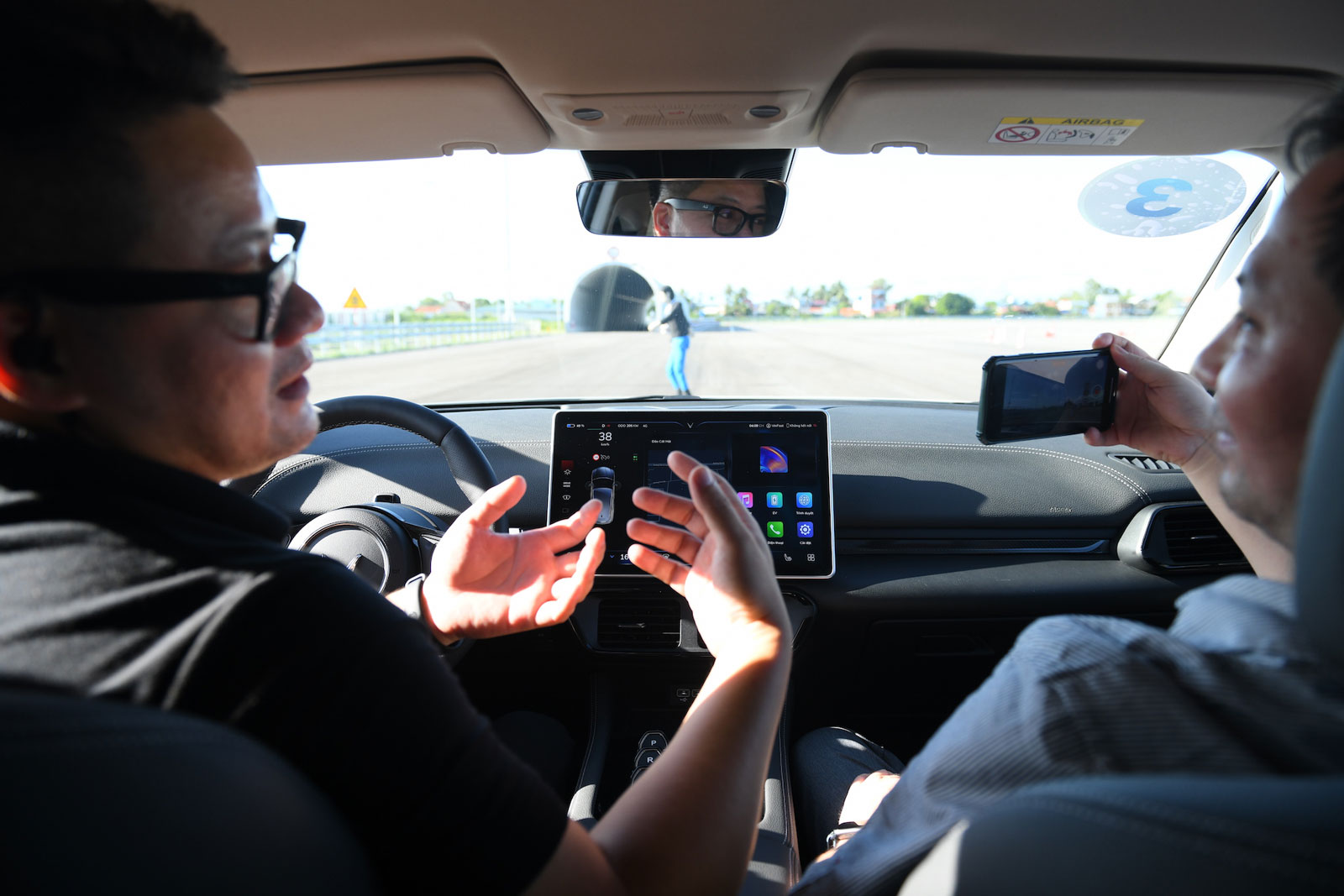 Khoảnh khắc tài xế hoàn toàn không điều khiển nhưng VF 8 với công nghệ hỗ trợ lái xe nâng cao (ADAS) vẫn xử lí an toàn và dừng xe khi bất ngờ gặp chướng ngại vật.