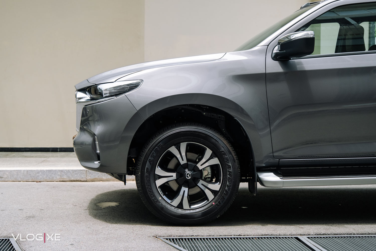 Những đường nét thiết kế thân xe của All New Mazda BT-50 cho cảm giác gọn gàng, tối giản hơn những mẫu xe bán tải khác. Bộ mâm của phiên bản 1.9 ATH 2 cầu có kích thước 18” với thiết kế hình bông hoa 5 cánh độc đáo. Bệ bước tiện ích cũng được trang bị sẵn trên phiên bản 1.9ATH 2 cầu. Nhìn từ phần đuôi sẽ thấy vòm bánh xe của All New BT-50 tạo thêm nét cơ bắp, vạm vỡ vừa đủ cho chiếc xe bán tải thanh lịch này.