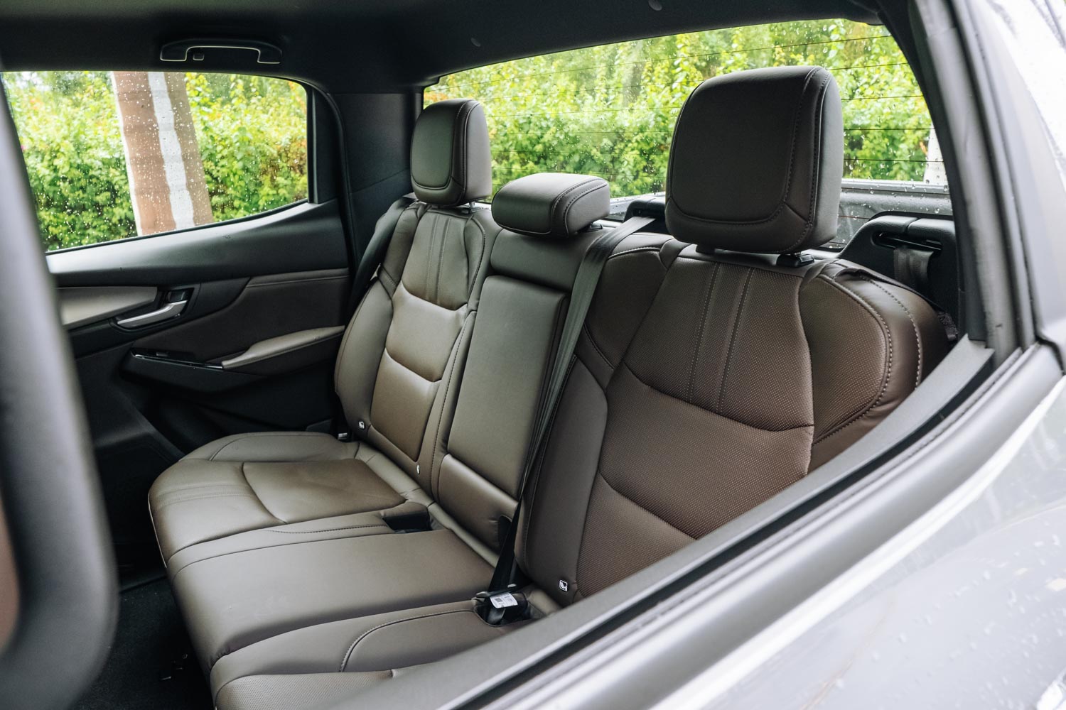 Không gian hàng ghế sau của All New BT-50 thuộc diện khá tốt trong phân khúc. Chỗ để chân và khoảng không đầu không quá dư dả nhưng vừa đủ cho 1 người lớn ngồi thoải mái. Độ ngã lưng của BT-50 2021 cũng vừa phải, không quá đứng. Các tính năng tiện nghi ở hàng ghế sau của All New BT-50 rất đầy đủ với cửa gió phục vụ riêng và cổng USB sạc các thiết bị di động. Ngoài ra, hàng ghế sau cũng có thêm bệ tỳ tay, kiêm chỗ để ly và một hộp đồ bí mật bên dưới ghế.