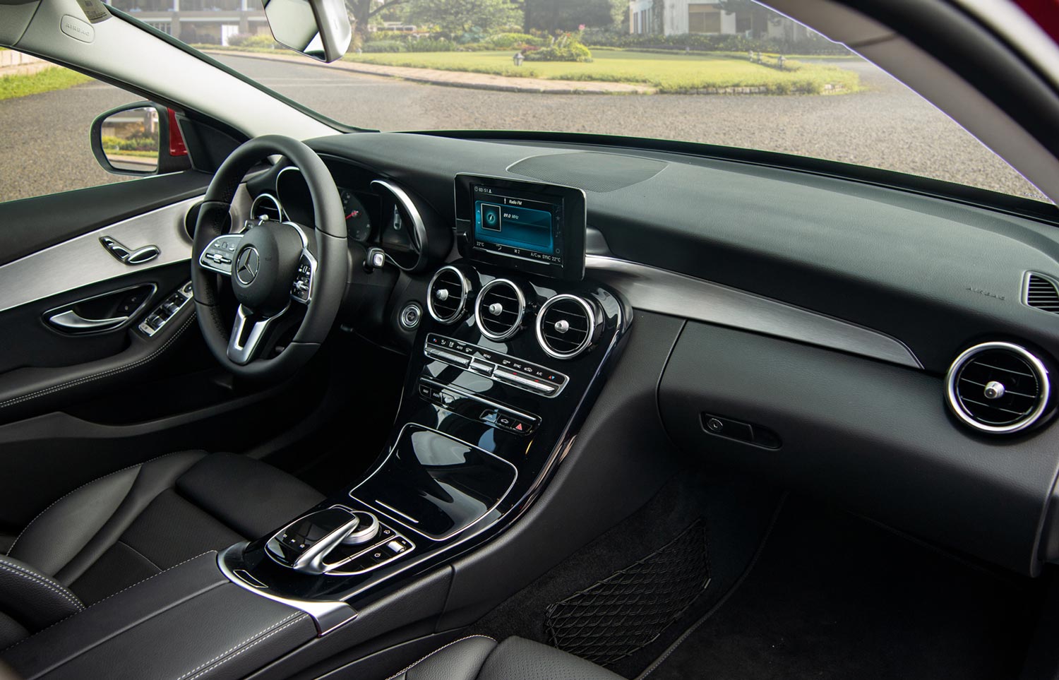 C 180 AMG được trang bị tay lái với thiết kế mới, tích hợp 2 nút điều khiển cảm ứng trên tay lái (Touch Control Buttons), giúp người lái dễ dàng điều khiển các tính năng của xe mà không bị sao nhãng. Tính năng Ga tự động (Cruise Control), Giới hạn tốc độ (Speed Limit) nay cũng được tích hợp lên tay lái. Xe được hỗ trợ kết nối Apple CarPlay/Android Auto, giúp khách hàng yêu công nghệ có nhiều lựa chọn về dẫn đường, giải trí hơn khi lái xe.
