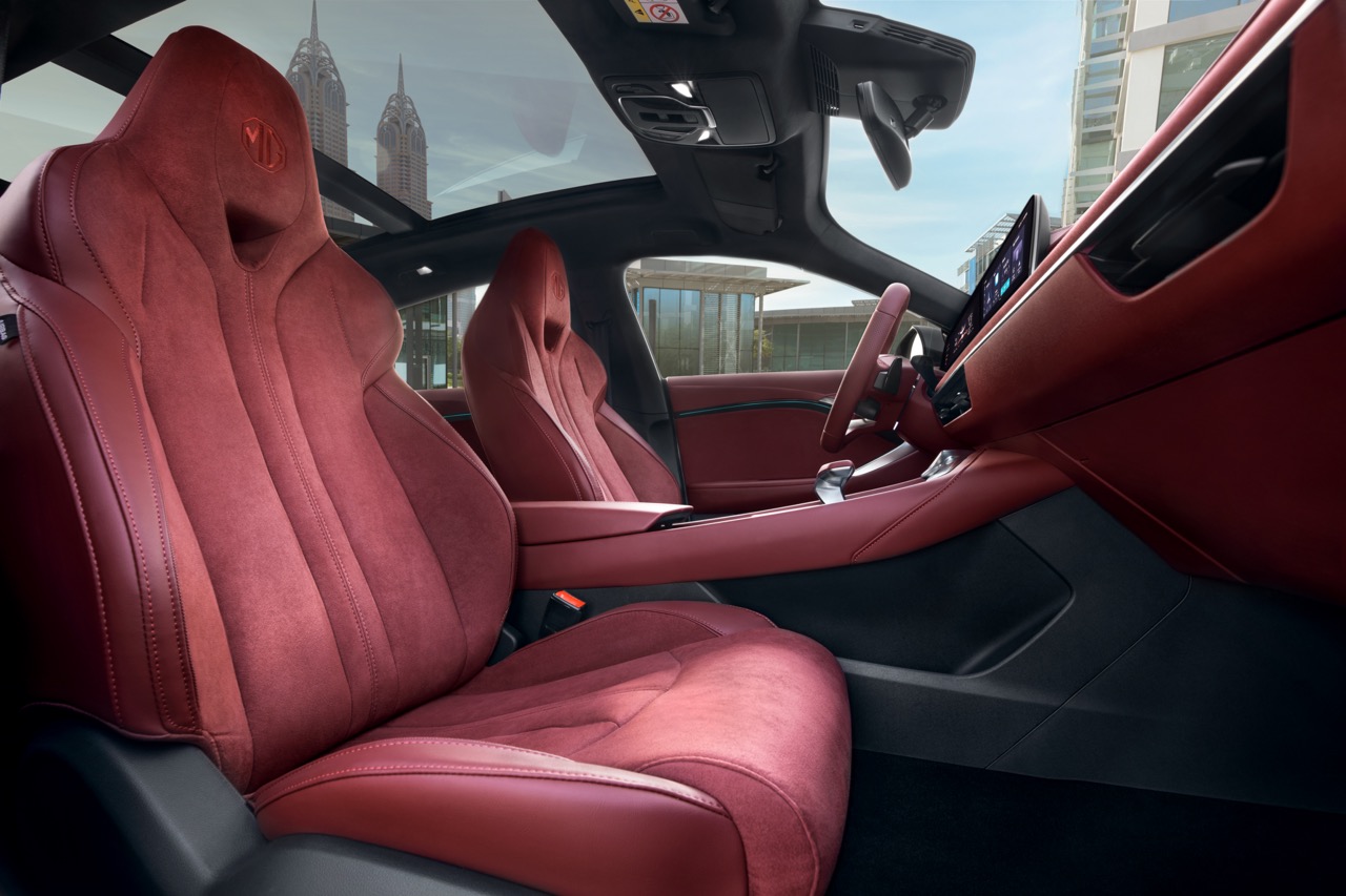 Phiên bản cao cấp nhất của MG7 với tông nội thất đỏ đen và vô-lăng thể thao mang lại cảm giác hiện đại, đặc biệt kết hợp với da Nappa, màn hình giải trí trung tâm kích thước lớn 12.3 inch nối dài với màn hiển thị thông tin vận hành trung tâm 10.25 inch. Hệ thống giải trí của chiếc xe cho phép kết nối Apple Carplay và Android Auto cùng hệ thống Bose 9 loa.