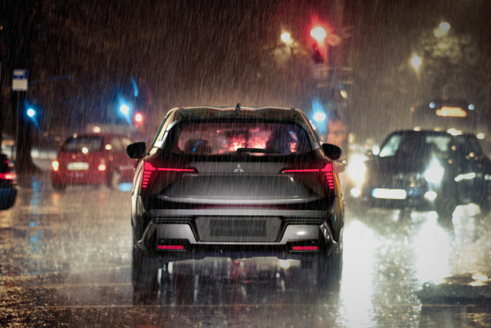 Ở phần lưới tản nhiệt, ngôn ngữ thiết kế Dynamic Shield mang phong cách thể thao được phát triển phù hợp với ý tưởng thiết kế tổng thể của xe. Đèn chiếu sáng ban ngày LED là sự ghép nổi của mảng đồ họa hình chữ L với các điểm cắt bên dưới tạo nên hình chữ T đặc trưng. Chi tiết này giúp chúng ta dễ dàng nhận ra đây là chiếc SUV của Mitsubishi khi nhìn từ xa.
