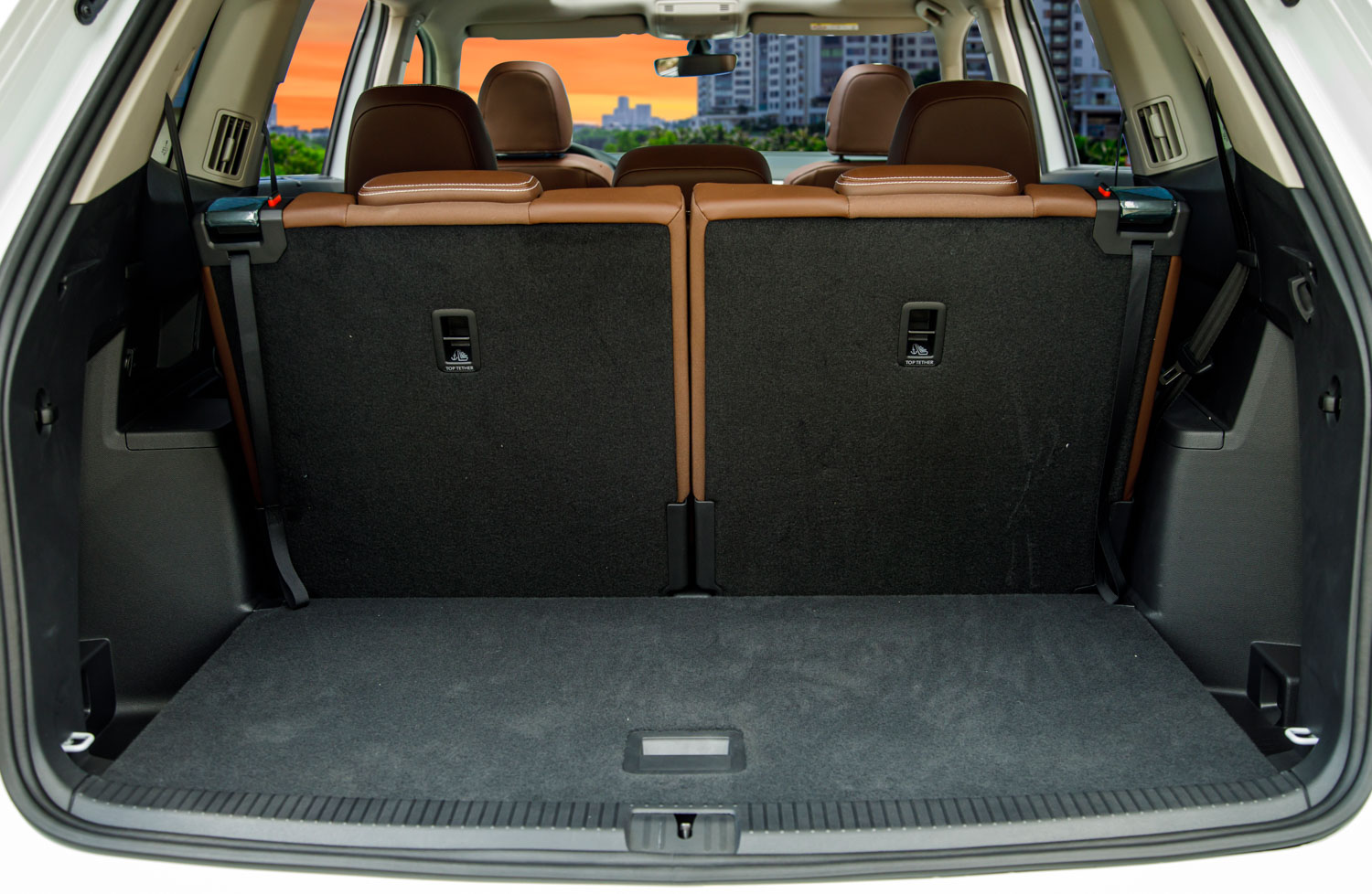 Với chiều dài 5.097 mm, chiều rộng 1.990 mm và chiều cao 1.777 mm, Teramont sở hữu khoang nội thất hoàn toàn thoải mái cho 7 người lớn và hành lý đi cùng. Hành khách dễ dàng đi vào hàng ghế thứ 3 chỉ với một thao tác gập trượt ghế đơn giản. Hàng ghế thứ 2 có thể chia băng ghế theo tỉ lệ 60:40 với nhiều lựa chọn để điều chỉnh: khoảng để chân, độ tựa lưng và chỗ gác tay. Hàng ghế thứ 2 và thứ 3 của Teramont có khả năng gập phẳng hoàn toàn, cho dung tích khoang hành lý lên đến 2.741 lít.