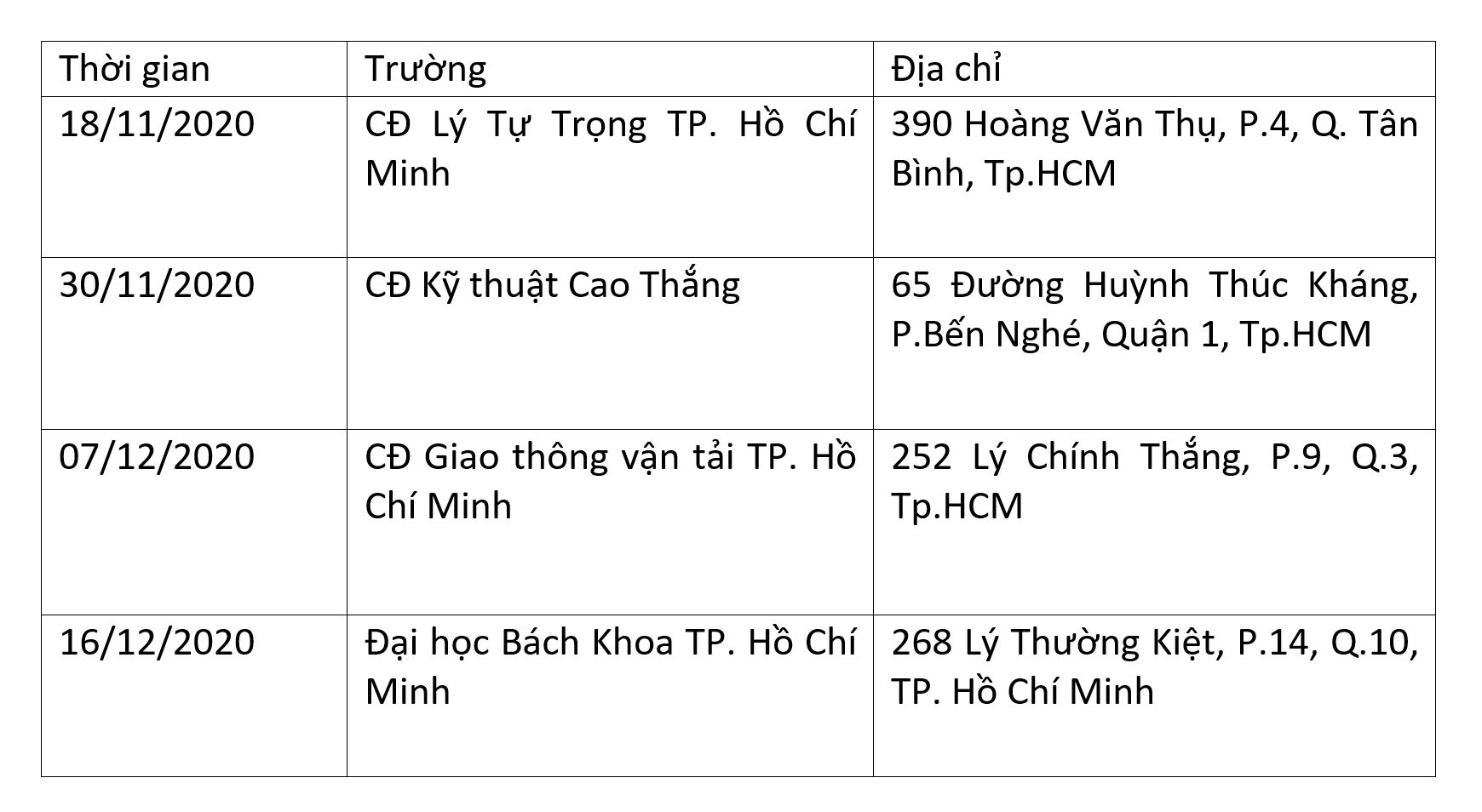 Lễ trao tặng phương tiện sẽ diễn ra từ ngày 18/11/2020, cụ thể như sau: