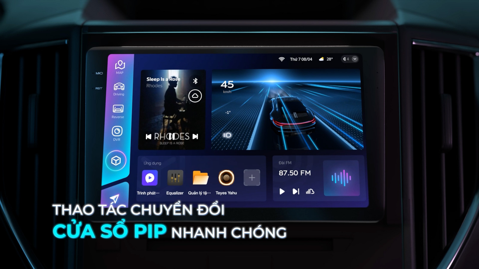 Nút DVR giúp người dùng lựa chọn và thay đổi một số ứng dụng mặc định, thường xuyên dùng đến và hiển thị ngay trên cửa sổ PiP. Những ứng dụng thay đổi được bao gồm nghe nhạc, xem video và mở camera 360 độ. Nhờ đó, tính năng PiP trên TEYES CC3 2K 360 giúp người dùng dễ dàng nắm bắt cùng lúc nhiều thông tin khác nhau, sử dụng các tính năng thiết yếu ngay tại màn hình chính mà vẫn đảm bảo an toàn khi đang tham gia giao thông.