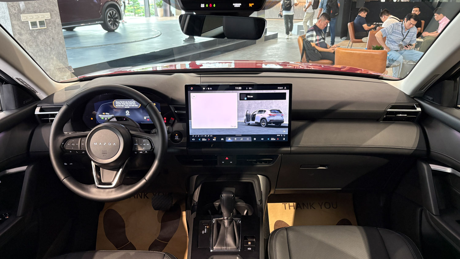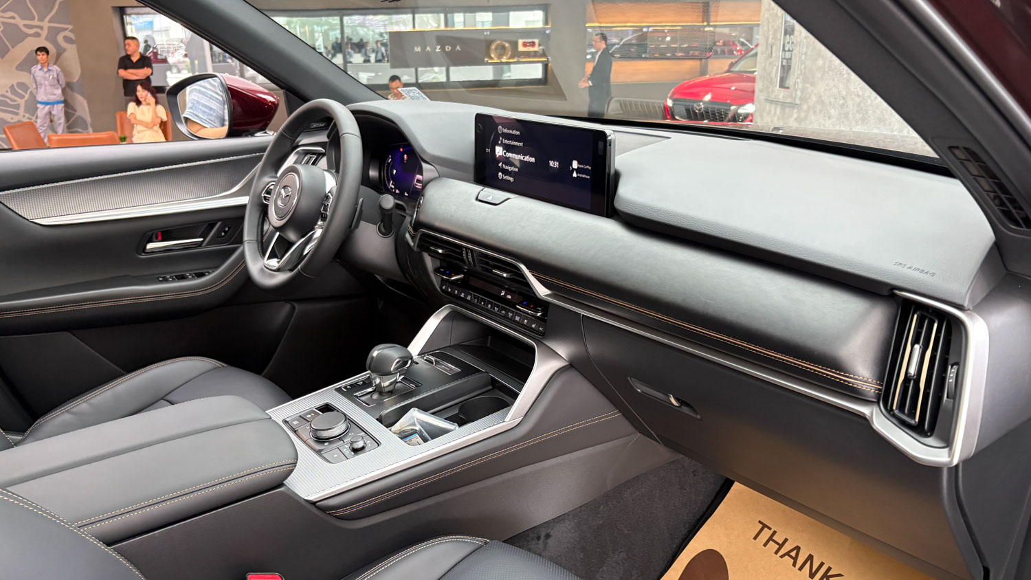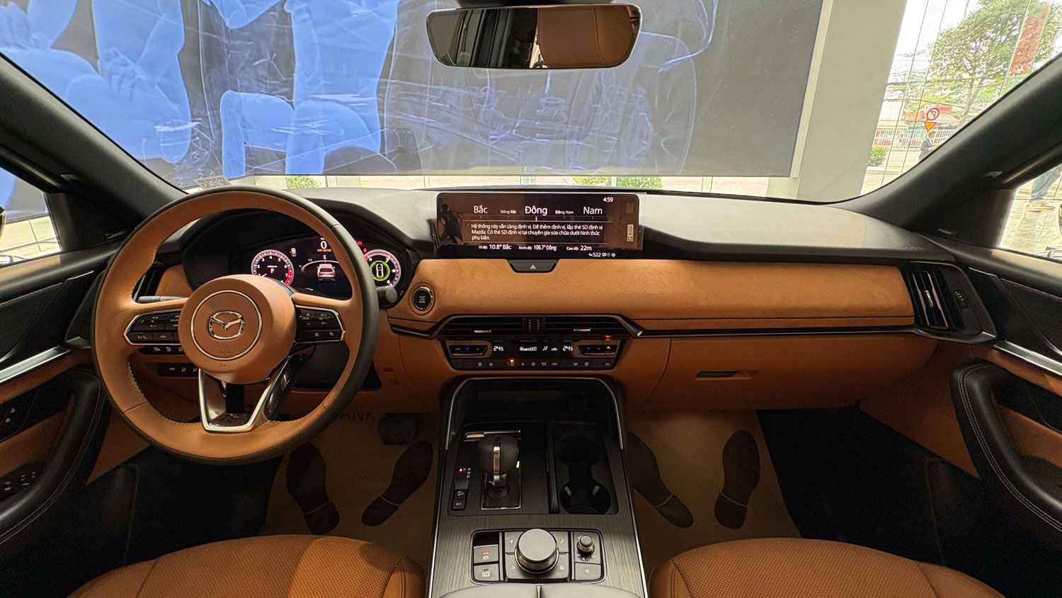 Nội thất của Mazda CX-90 tiếp tục theo đuổi triết lý tối giản nhưng tinh tế. Xe được trang bị màn hình giải trí 12,3 inch, camera 360 với tính năng mở rộng vùng quan sát, màn hình HUD hiển thị tốc độ lên kính lái. Điều hòa không khí độc lập cho tất cả hàng ghế, sạc không dây, dàn âm thanh BOSE 12 loa và cửa sổ trời toàn cảnh.
