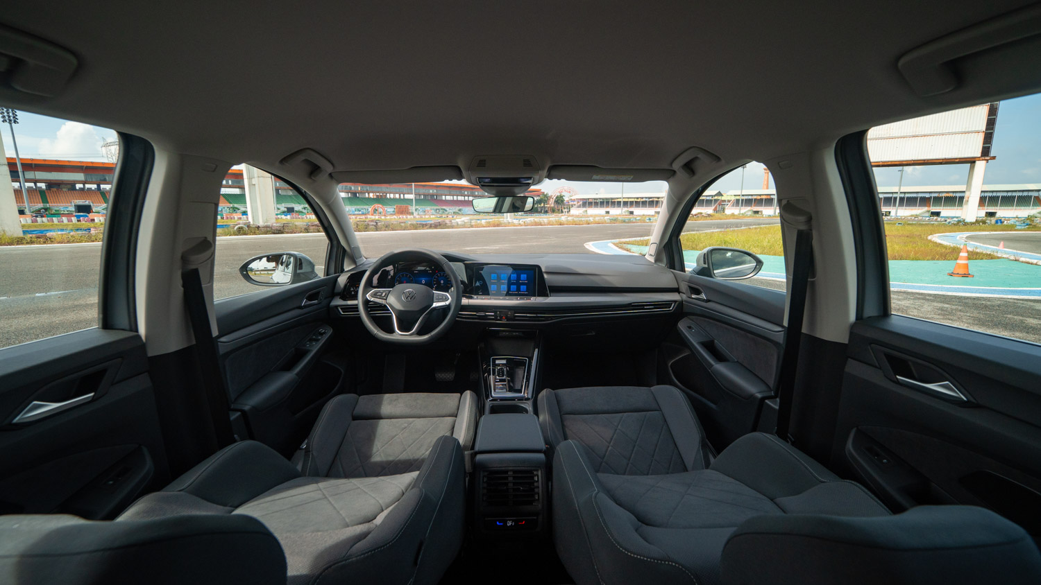 Tiện nghi cao cấp của 3 phiên bản Golf 1.5 eTSI (trang bị khác nhau tùy phiên bản): Vô-lăng thể thao R-Line, cụm điều khiển cần số thiết kế mới, đồng hồ trung tâm kỹ thuật số 10.3 inch đa sắc, màn hình giải trí 10 inch, đèn viền Ambient Light 30 màu, ghế thể thao R-line, hệ thống âm thanh Harman Kardon, điều hòa nhiệt độ Climatronic 3 vùng nhiệt độ, lọc không khí Aircare, HUD (Headup Display) và taplo kiểu carbon.