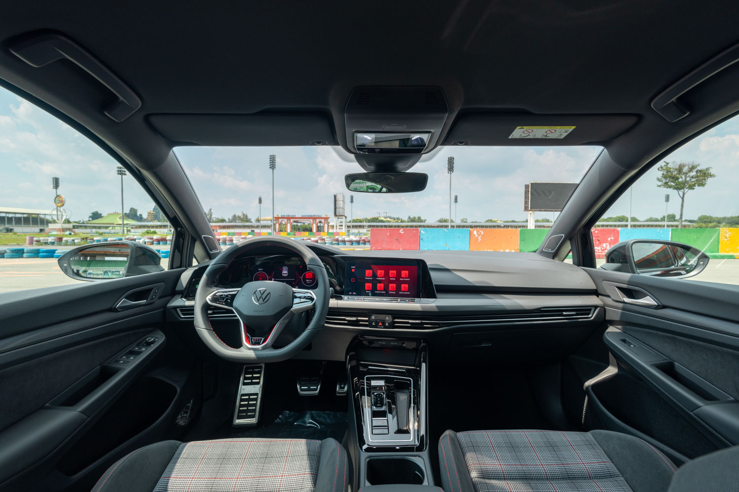 Phong cách “GTI” cũng hiện diện trong không gian nội thất qua các chi tiết: Vô-lăng thể thao GTI đặc trưng, Ghế thể thao viền chỉ đỏ, logo GTI, Cần số điện tử kiểu mới, Bảng đồng hồ trung tâm kiểu GTI và Ambient Light 30 màu. Bên cạnh một số tiện nghi cao cấp khác như: Loa Harman Kardon, Cửa sổ trời, Màn hình Discover Pro 10 inch, Đồng hồ trung tâm Digital Cockpit, Điều hòa Climatronic 3 vùng…