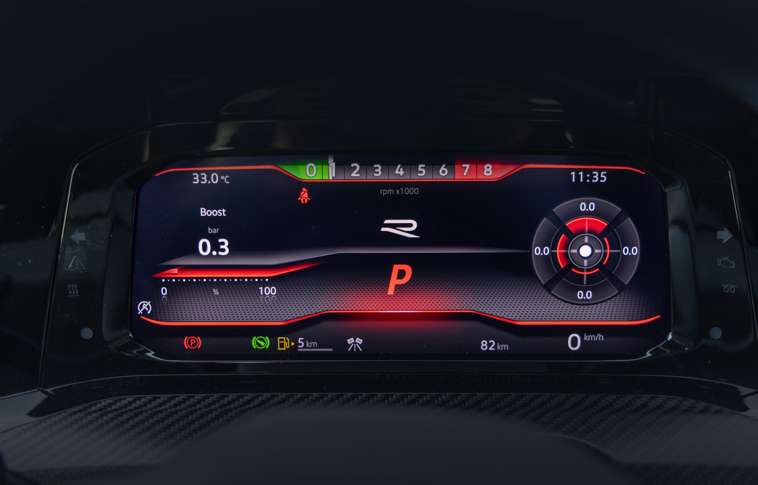 Tương tự, nội thất của Volkswagen Golf R Performance 4Motion có: Vô-lăng thể thao R-Performance với nút R có đèn nền màu xanh và lẫy chuyển số lớn, đồng hồ trung tâm kiểu R-View đặc trưng, ghế kiểu thể thao, tích hợp tựa đầu và logo R, chất liệu ghế cao cấp, chi tiết trang trí đặc trưng phiên bản R với màu “Carbon Grey”, bàn đạp và chỗ gác chân bằng thép không gỉ và viền trang trí màu xanh đặc trưng R trong nội thất.