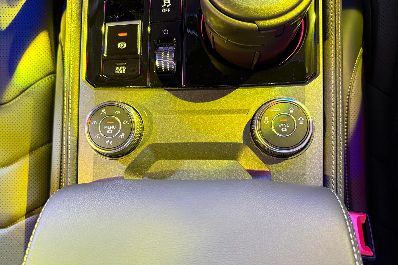 Đặc biệt, Touareg còn có khả năng chỉnh độ cao gầm xe tự động (188 – 258 mm), hoặc điều khiển bởi người lái. Các điều khiển độ cao gầm bao gồm: Loading (chế độ chất tải nặng), Road (chế độ tiêu chuẩn), Off-road (chế độ vận hành địa hình), Off-road+ (chế độ địa hình nâng cao) và SYNC (chức năng đồng bộ với chế độ lái).