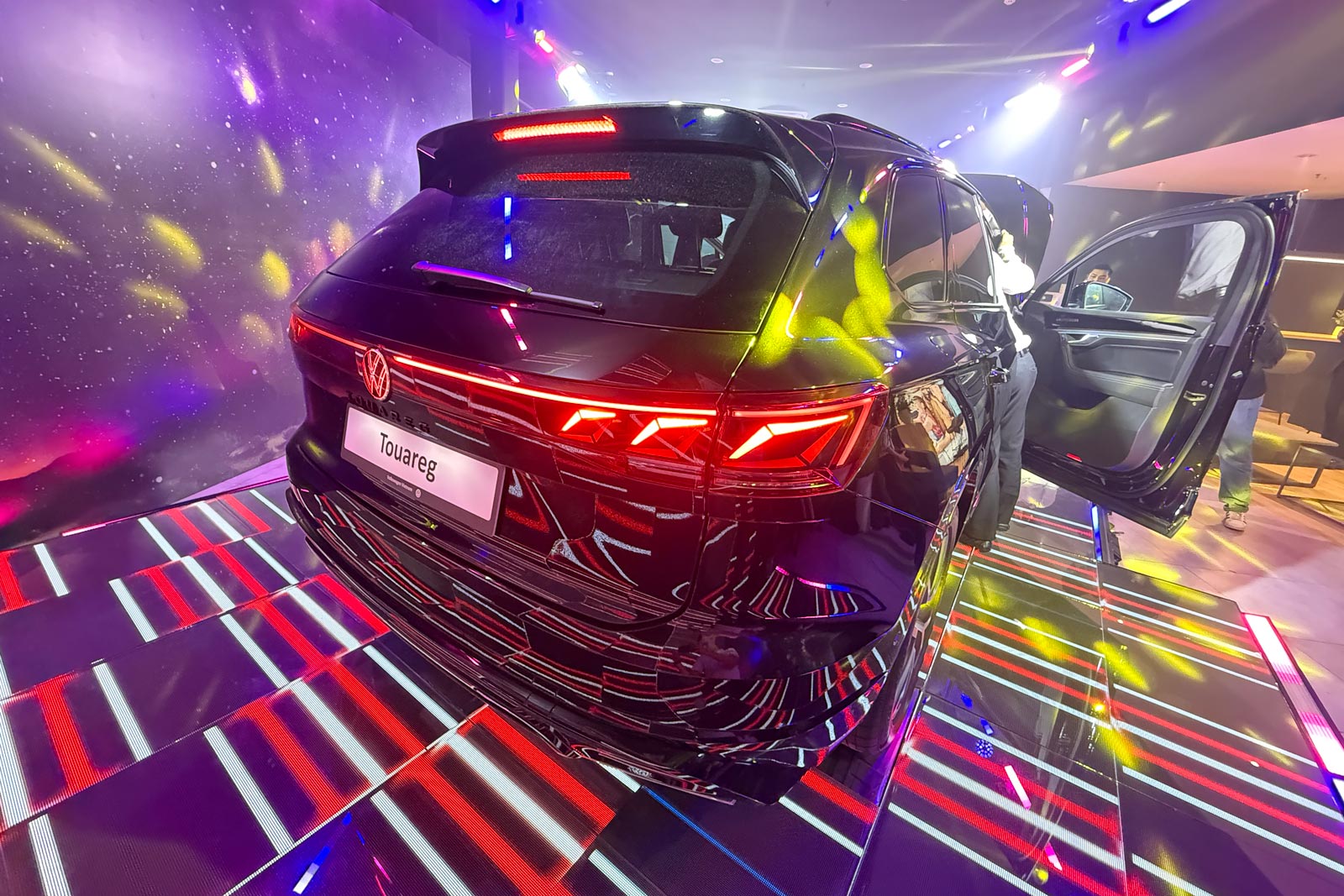 Hai phiên bản Highline và R-Line nâng cấp 2025 được làm mới một vài điểm ở mặt ngoại hình để phân biệt với bản trước nâng cấp. Đáng chú là mặt ca lăng xe được mở rộng và bao trùm cụm đèn trước. Còn cụm đèn phía sau của Touareg Highline và R-Line nâng cấp 2025 nay có thiết kế nối liền từ trái sang phải. Ngoài ra, logo VW phía đuôi xe cũng tích hợp đèn phát sáng. Riêng bản R-Line mang đậm phong cách thể thao với mặt ca lăng sơn đen, logo R-Line trên thân xe, ghế ngồi đặc trưng R-Line, cùng hệ thống âm thanh Dynaudio cao cấp.