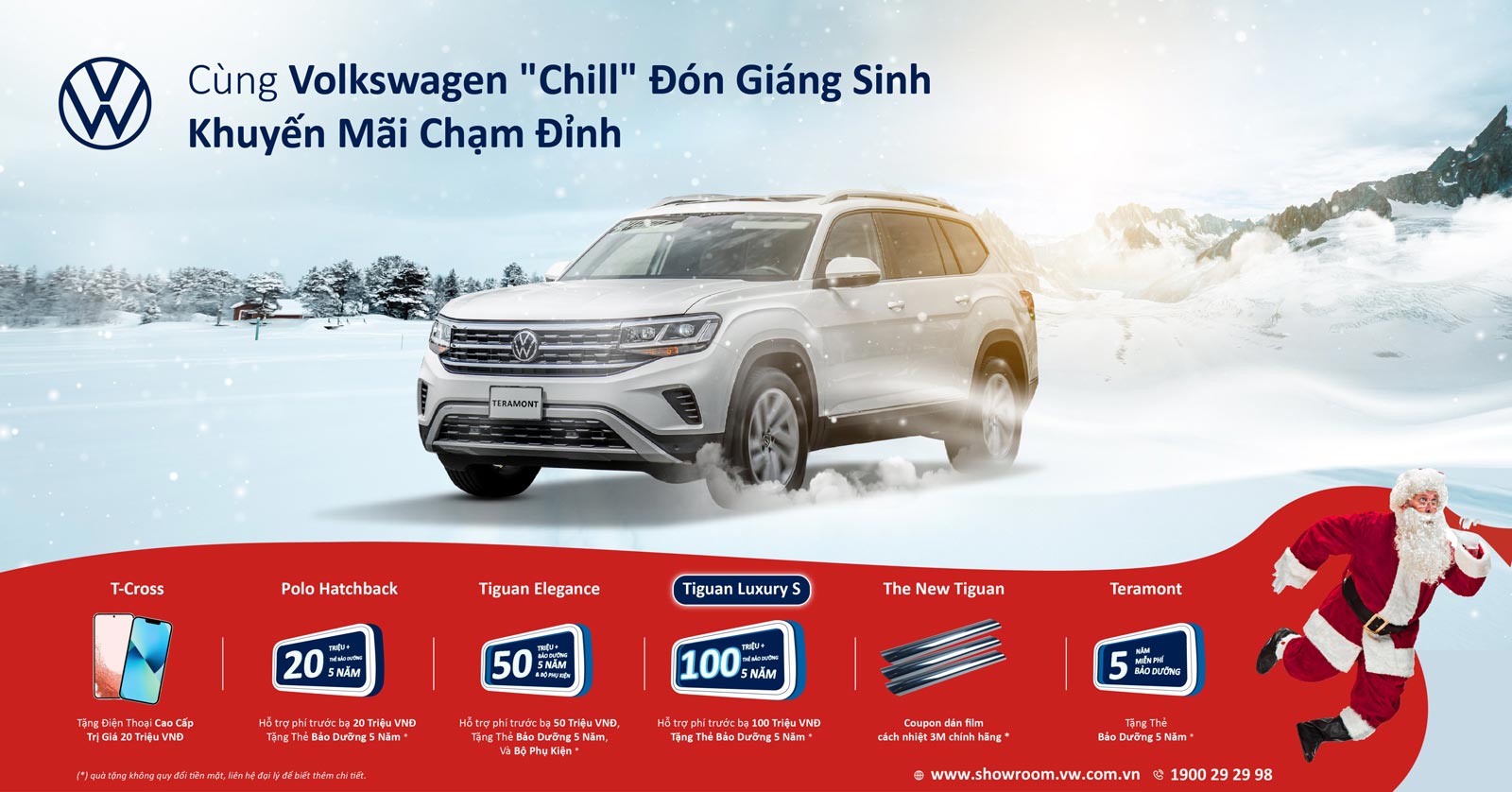 Tin vui là Volkswagen mang đến cho khách hàng mua các dòng xe VW trong tháng 12 chương trình Ưu đãi mùa Giáng sinh và Giảm 15% phụ tùng chính hãng, cụ thể như sau: